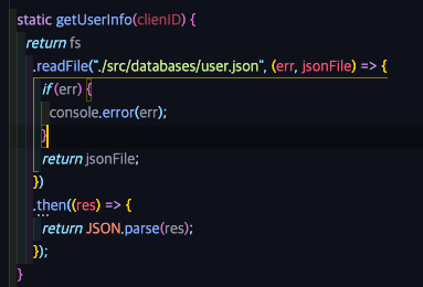 fs.readFile 을 통해 database 파일에서 json데이터 뭉치를 가져오려고 하는데 계속 아래와 같은 에러가 떴다.